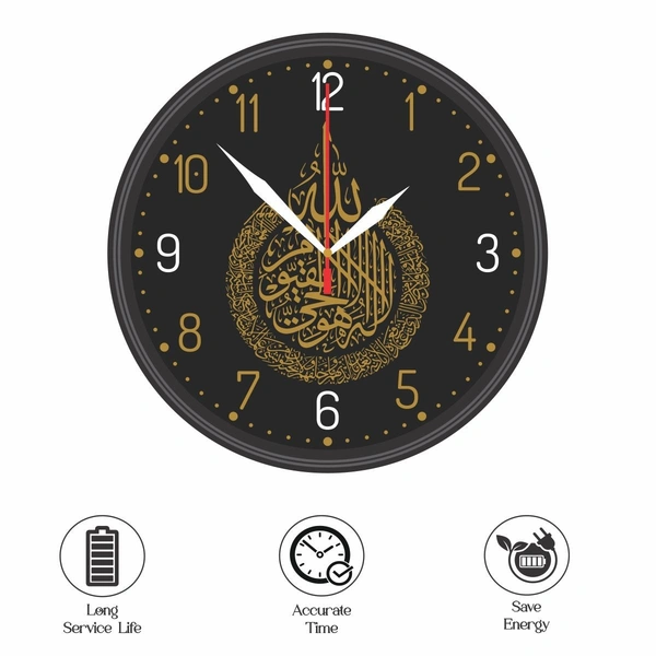 - Elegant Design: The sleek black finish and intricate Arabic text give the clock a sophisticated and modern feel, seamlessly complementing any interior style.